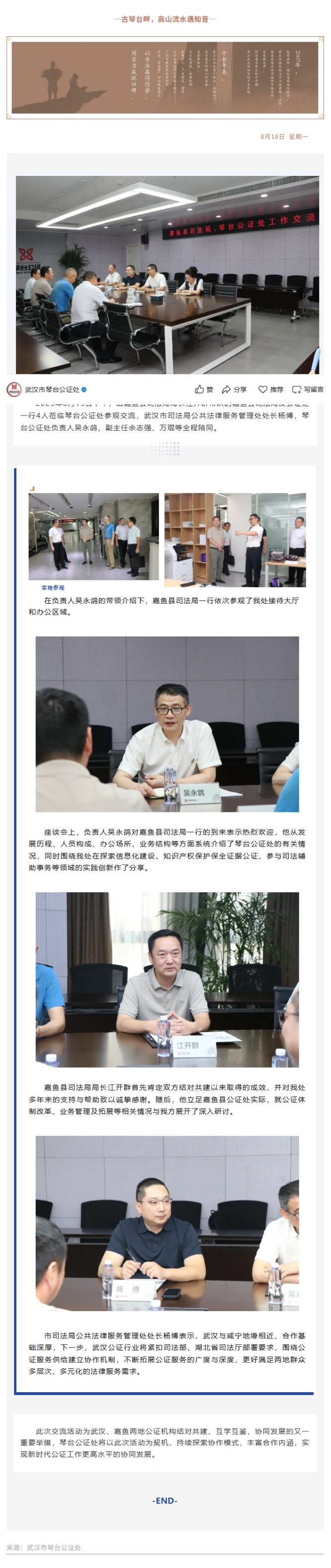 咸宁市嘉鱼县司法局一行莅临我处参观交流