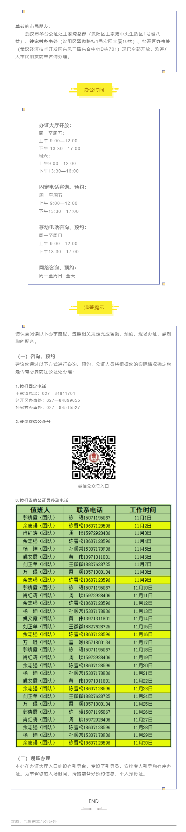 琴台公证处11月咨询、预约办理固定电话、移动电话、网络路径集中公示