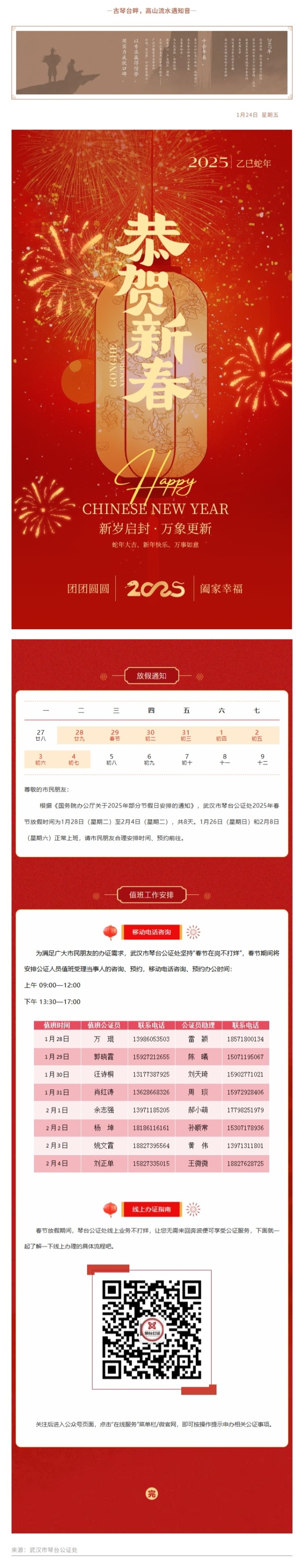 服务不断档,琴台公证处春节放假安排